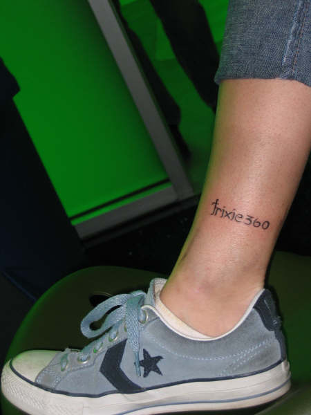 I acquired the gamertag trixie360 in October 2005 – just before the launch of the Xbox 360. At the Zero Hour launch event I had it tattooed on my ankle. A gamertat, if you will.