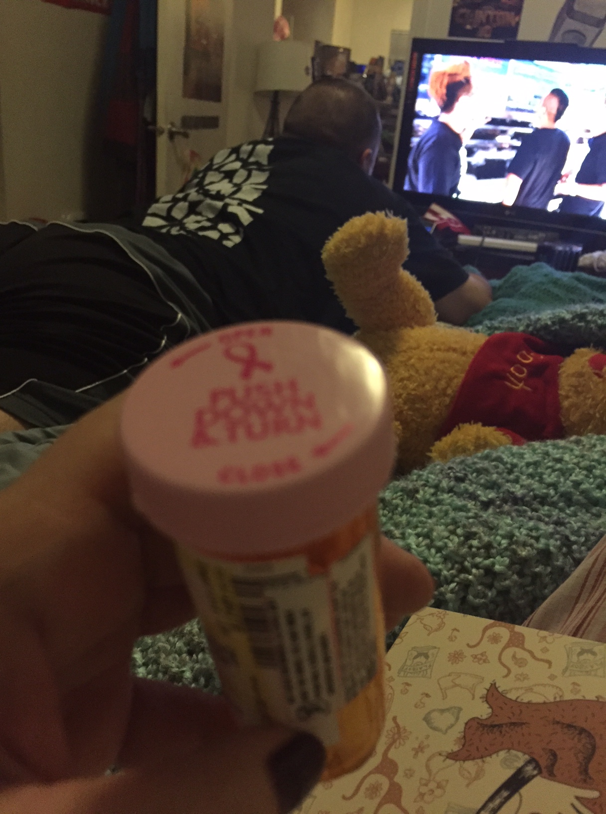 So now I’ve got my Percocet with a Pinktober cap and my boobs are wrapped up in an Ace bandage.