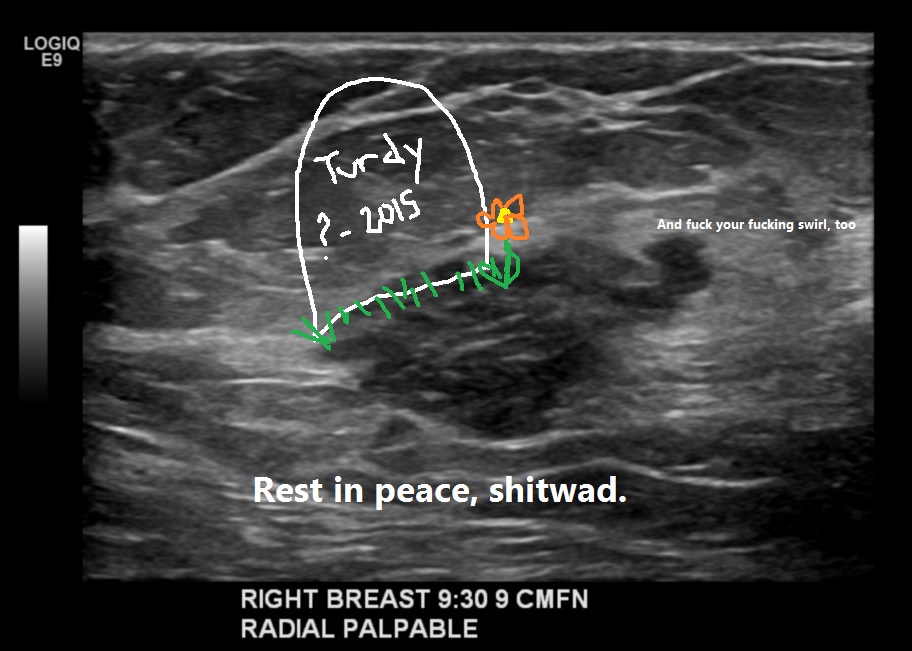 Okay, so the good news is Turdy is dead. I will place no flowers on that fucker’s grave. But, I am grateful to him for being big and lumpy and close to the surface. If I hadn’t felt his gnarly ass in my boob, this cancer would probably still be undetected, spreading its shitty, sneaky doom throughout my body.