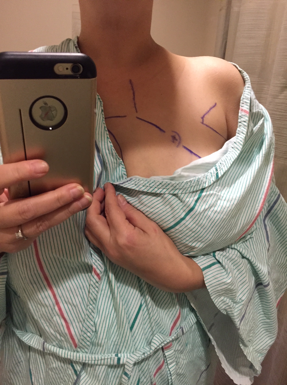 Now that chemo and surgery are in the “done” pile, it’s time for radiation. What’s getting zapped? My right boob and the lymph nodes in my right armpit. The preparation for this has been sort of fascinating for a nerd like me. First, the radiation nurse educated me on what I can and cannot do while I’m getting radiation treatment. What sunk in is that I can’t use deodorant on the armpit that’s getting zapped. Ew, right? Well, she told me the tale of a non-compliant patient who insisted on using deodorant and his skin “sloughed off.” No pit stick. Check. The other thing is that I have to eat a ton (60-90 grams daily) of protein (Cue shit-eating grin from my husband. Nice try, Gunny) to rebuild the good cells that are going to be dying off from the rads. She said other stuff too. No antioxidants, go easy on green tea, no hot tubs or crazy hot baths/showers. I’ll see her each Friday so she can check on how I’m feeling and make sure there aren’t any early signs of lymphedema.