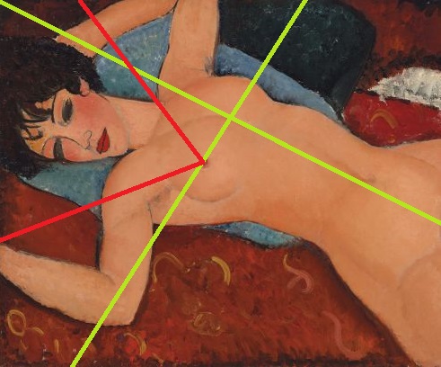 Both the disc-shaped thing and the cafeteria-tray thing that took turns rotating into position above me were slightly reflective, so I could see me and my boob and the red and green lines. Starfire popped in and out of the booth to draw on me. She also gave me one final black dot tattoo. My posture was that of a reclining nude, but with a Tron grid overlay. Weird. I didn’t have my phone, or I’d have captured it. Here’s sort of what it looked like: